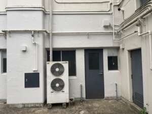外壁貫通部穴埋め作業の続きとして、塗装補修をしました。